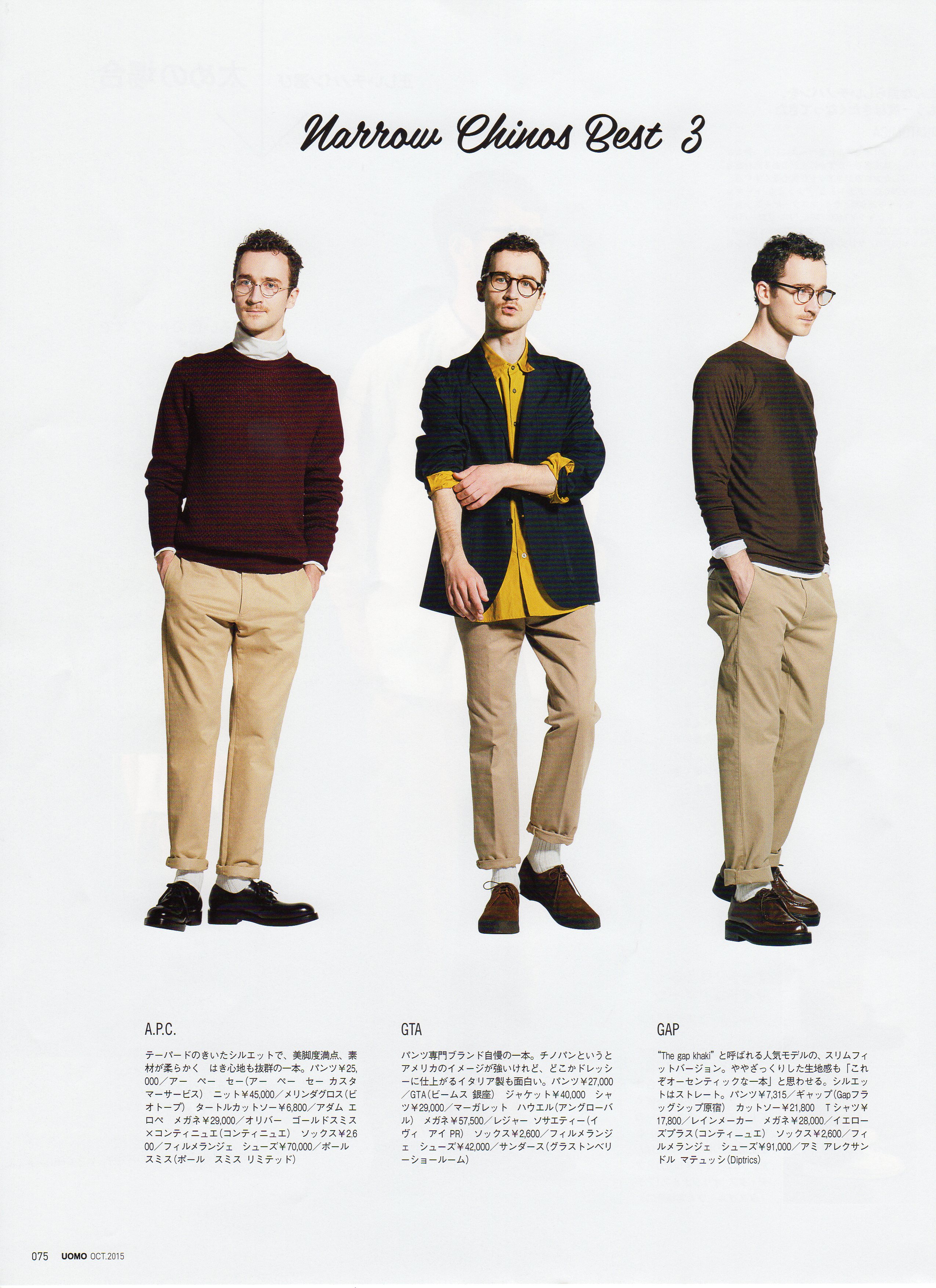 Anthony from the Tokyo model agency Acqua Models is sophisticatedly casual in chinos and other smart numbers.